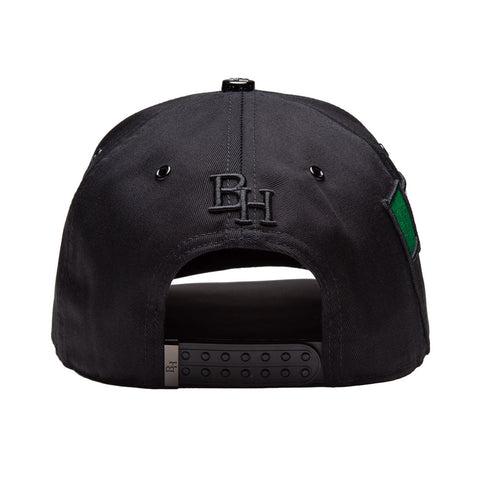 Get ready to snap up some serious style with our M Rhinestone Snapback! Featuring a bold design of the Mexican flag, this Barajas hat is sure to turn heads. The perfect addition to any outfit, it's the ultimate combination of fashion and fun. Black never looked so good!